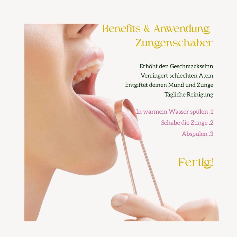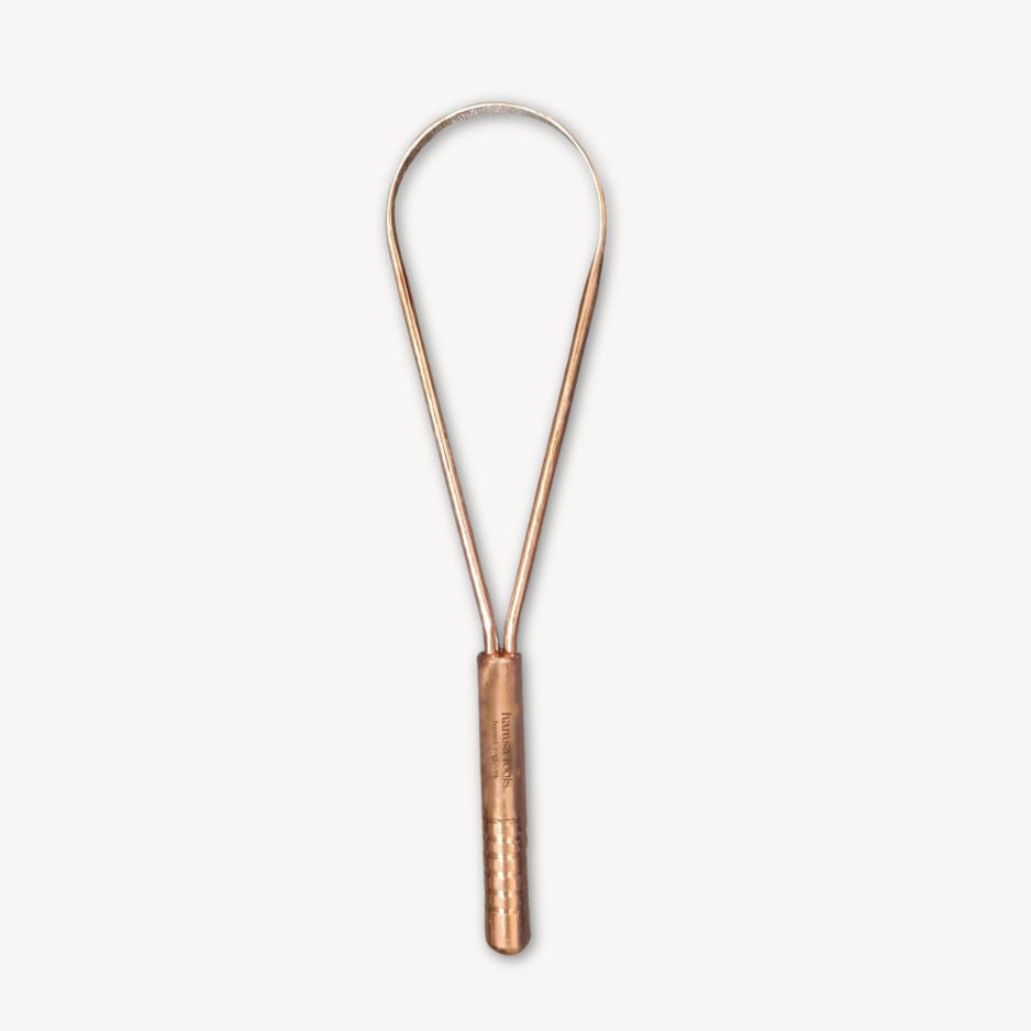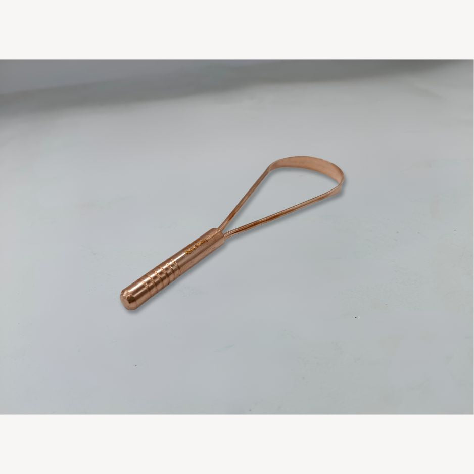 Starte deinen Tag mit einem reinen Gefühl im Mund – ganz nach ayurvedischer Tradition. Unser hochwertiger Zungenschaber aus 100 % reinem Kupfer entfernt sanft Beläge, die sich über Nacht auf der Zunge ansammeln und beugt so schlechtem Atem, Bakterienbildung und Giftstoffansammlungen vor. Kupfer ist von Natur aus antibakteriell und unterstützt die Mundflora auf natürliche Weise.